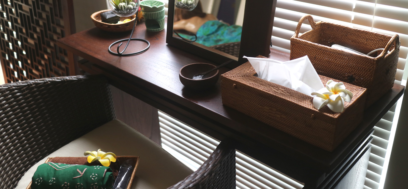 施術部屋は人の五感に働きかけたバリの癒しの空間になっています。